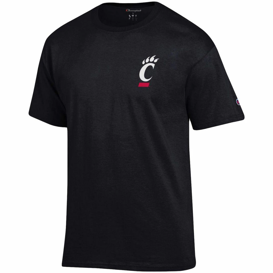 - People coming or going will see your Cincinnati Bearcats fandom when you wear this Stack 2-Hit T-shirt from Champion. It features the Cincinnati Bearcats logo on the front and team graphics printed on the back. Additionally, the cotton material provides a comfortable feel.