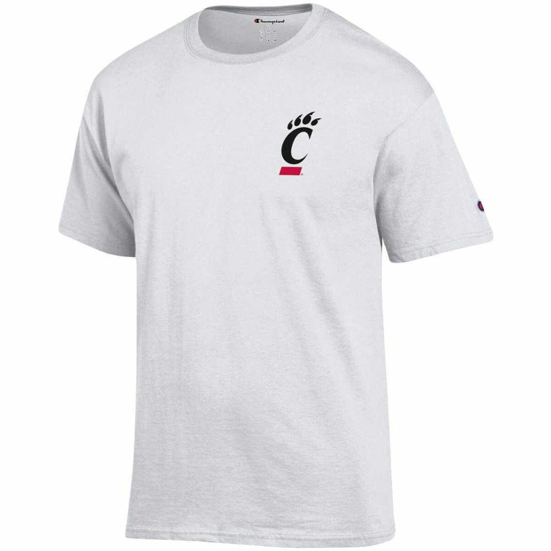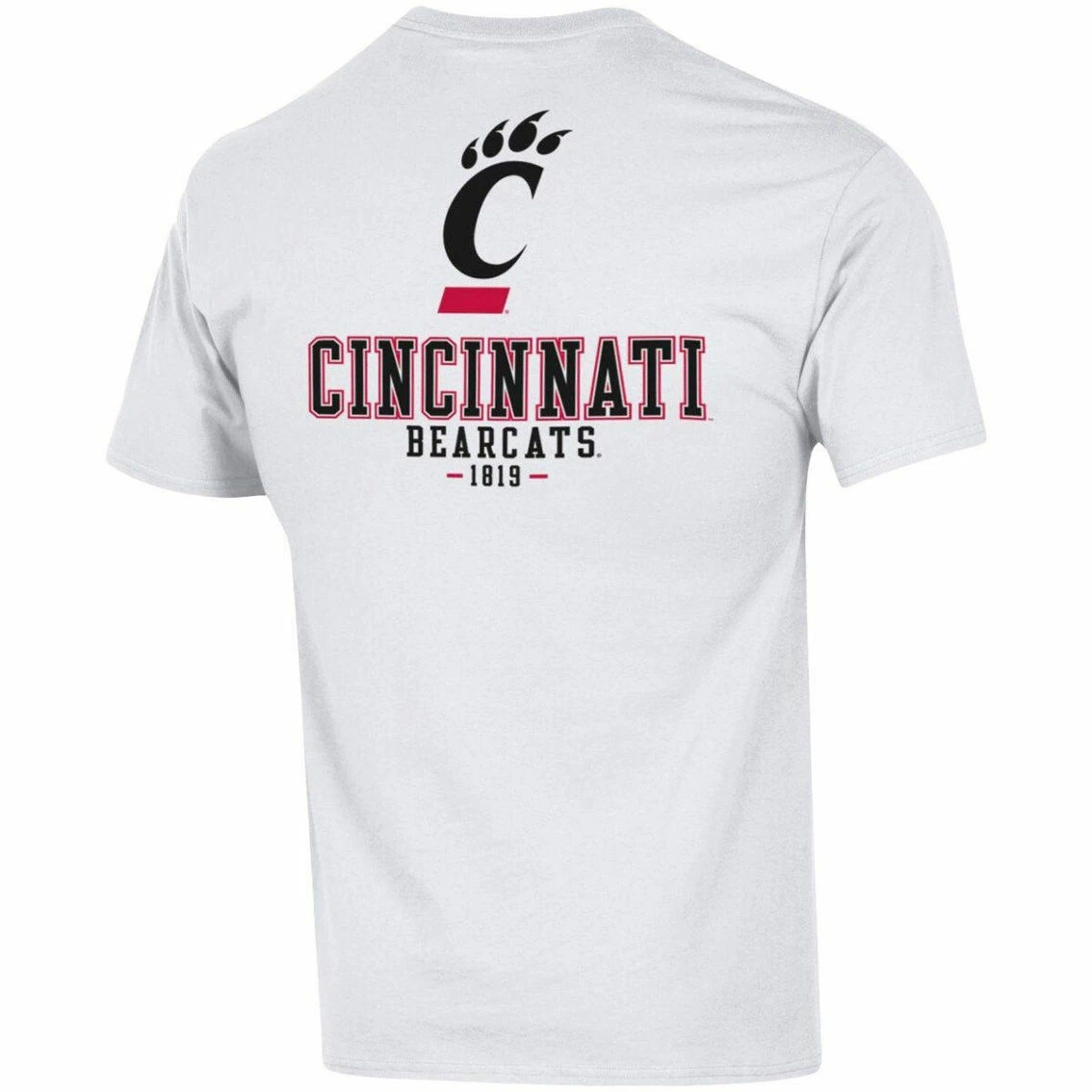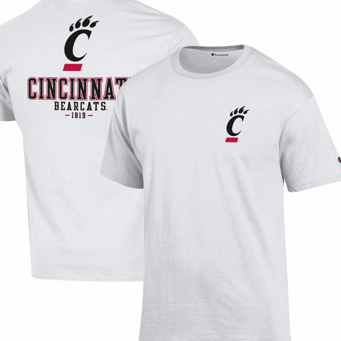 - People coming or going will see your Cincinnati Bearcats fandom when you wear this Stack 2-Hit T-shirt from Champion. It features the Cincinnati Bearcats logo on the front and team graphics printed on the back. Additionally, the cotton material provides a comfortable feel.