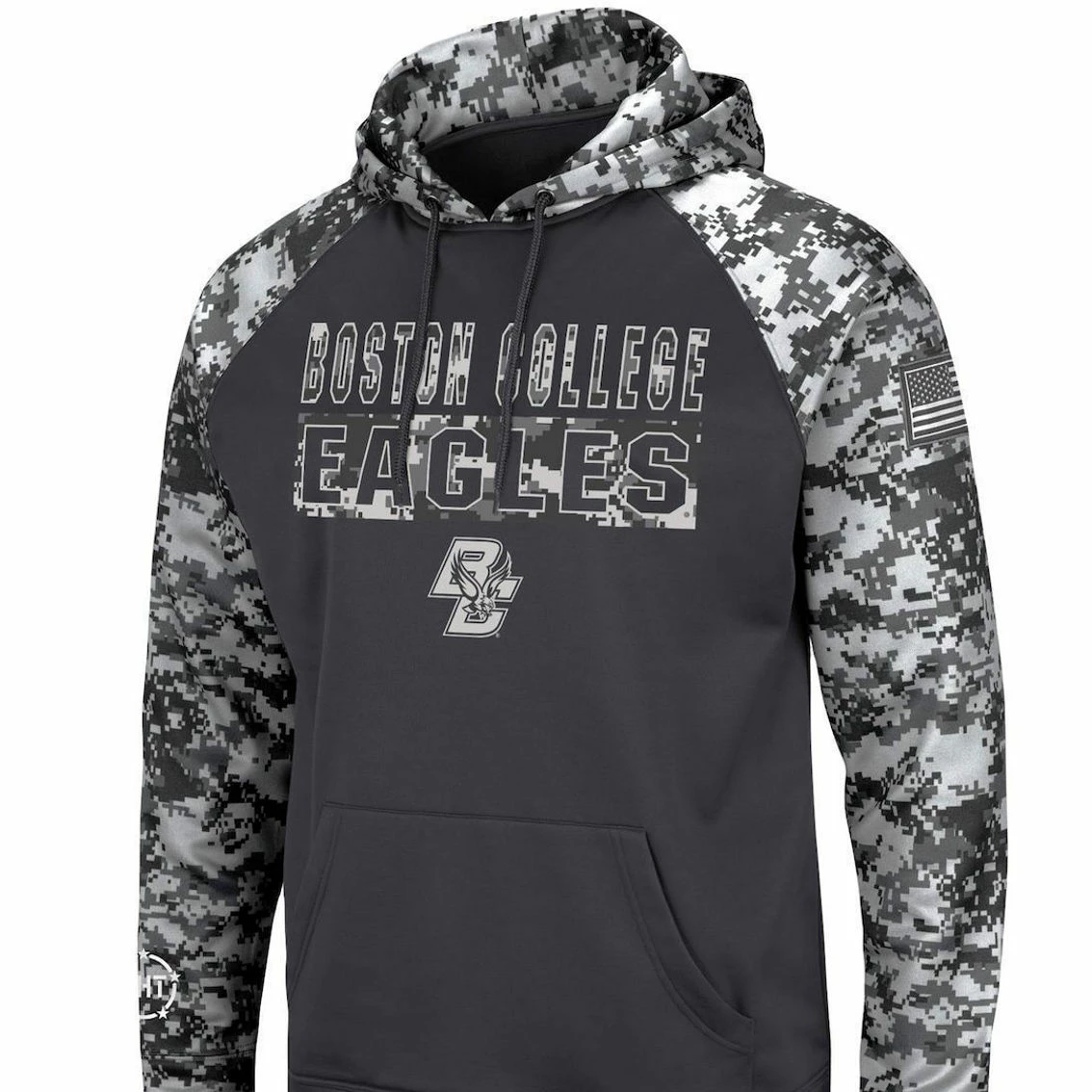 - You love to show your Boston College Eagles fandom and your appreciation for military veterans. When the weather starts to drop, grab this OHT Military Appreciation Digital Camo pullover hoodie from Colosseum. With a striking digital camo pattern and crisp Boston College Eagles graphics, you’ll stay warm while supporting military veterans.