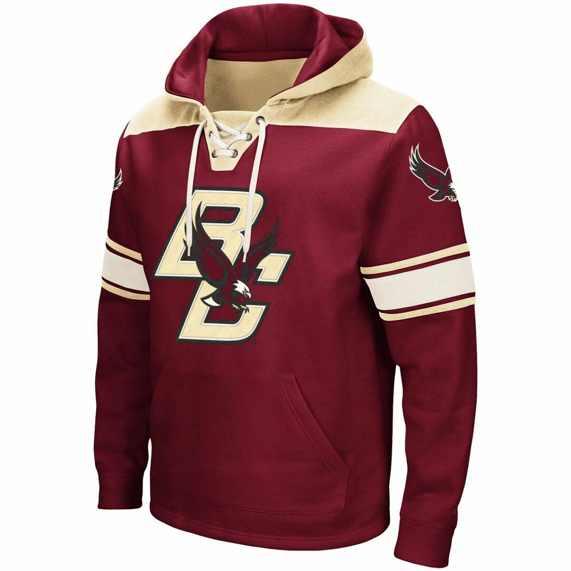 - Pull on this exclusive Colosseum hoodie for a stylish look that shows off your authentic Boston College Eagles pride. With a trendy neckline and distinctive graphics, this 2.0 Lace-Up hoodie is the perfect addition to your closet full of Boston College Eagles gear. Whether you’re headed to the big game or getting your day started, this cool pullover adds an impressive amount of spirit to any outfit.