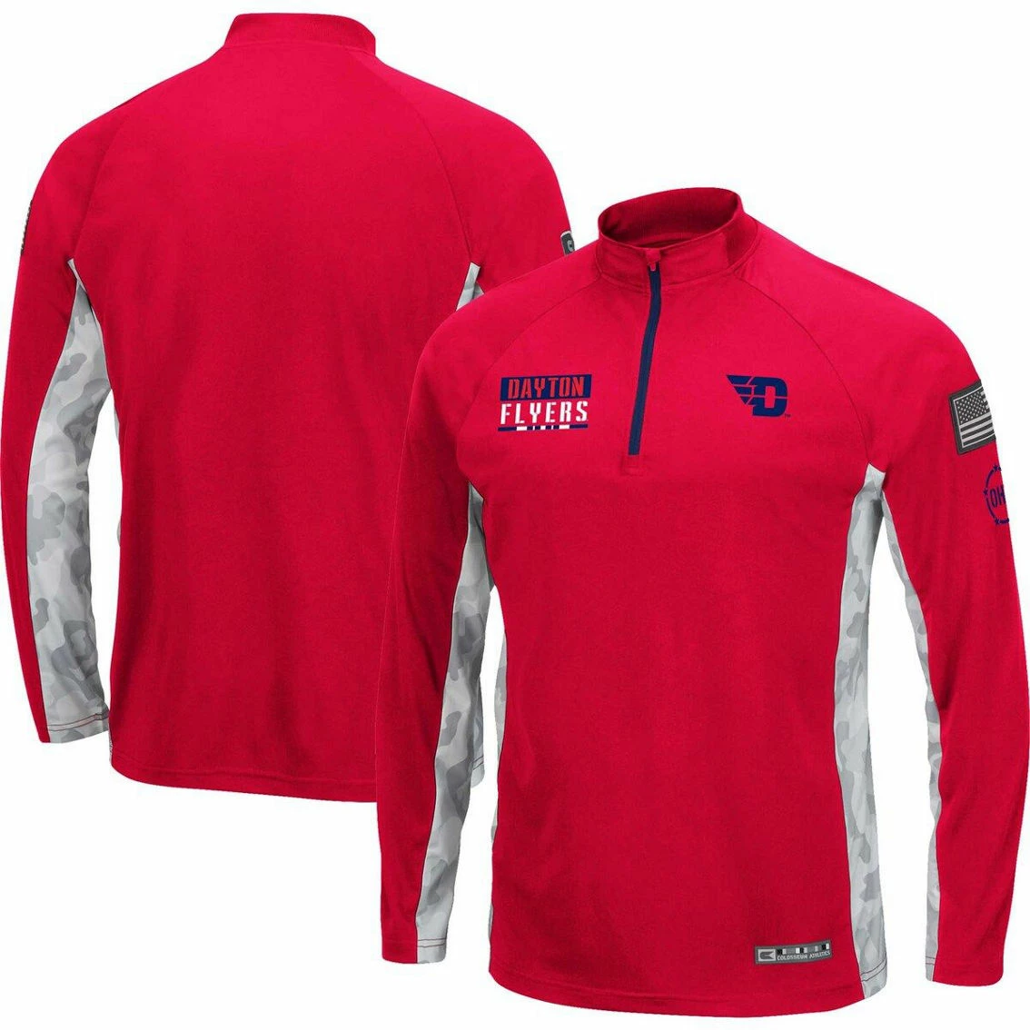 - As a loyal Dayton Flyers member, ensure your game day gear is top-notch by sporting this Colosseum OHT Military Appreciation Snow Crusie quarter-zip. It features roomy raglan sleeves and a warm mock neck for extra coverage. Best of all, the signature Dayton Flyers design is complemented by camo paneling along the arms for a unique layering option.