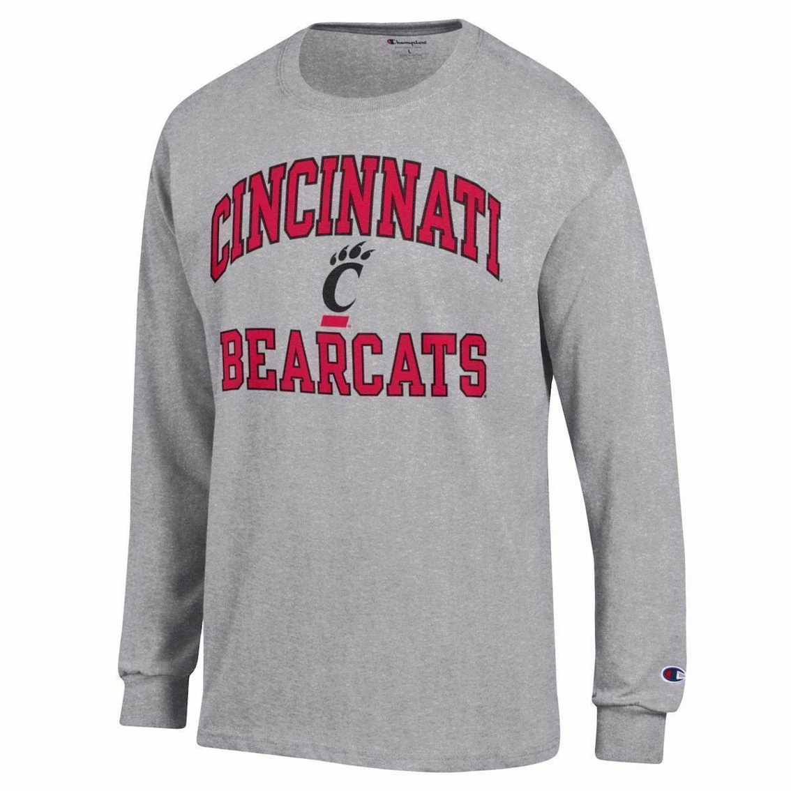 - Let everyone know that you are full of Cincinnati Bearcats spirit by wearing this High Motor T-shirt from Champion. It features distinct team graphics across the front, which includes their iconic logo front and center. When you throw on this long sleeve tee and feel that soft cotton fabric, you’ll know that you have your next go-to piece of Cincinnati Bearcats gear.