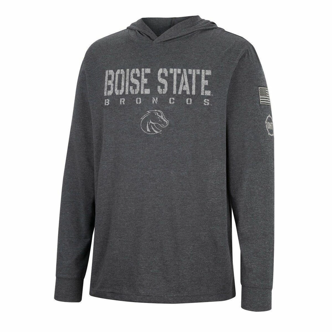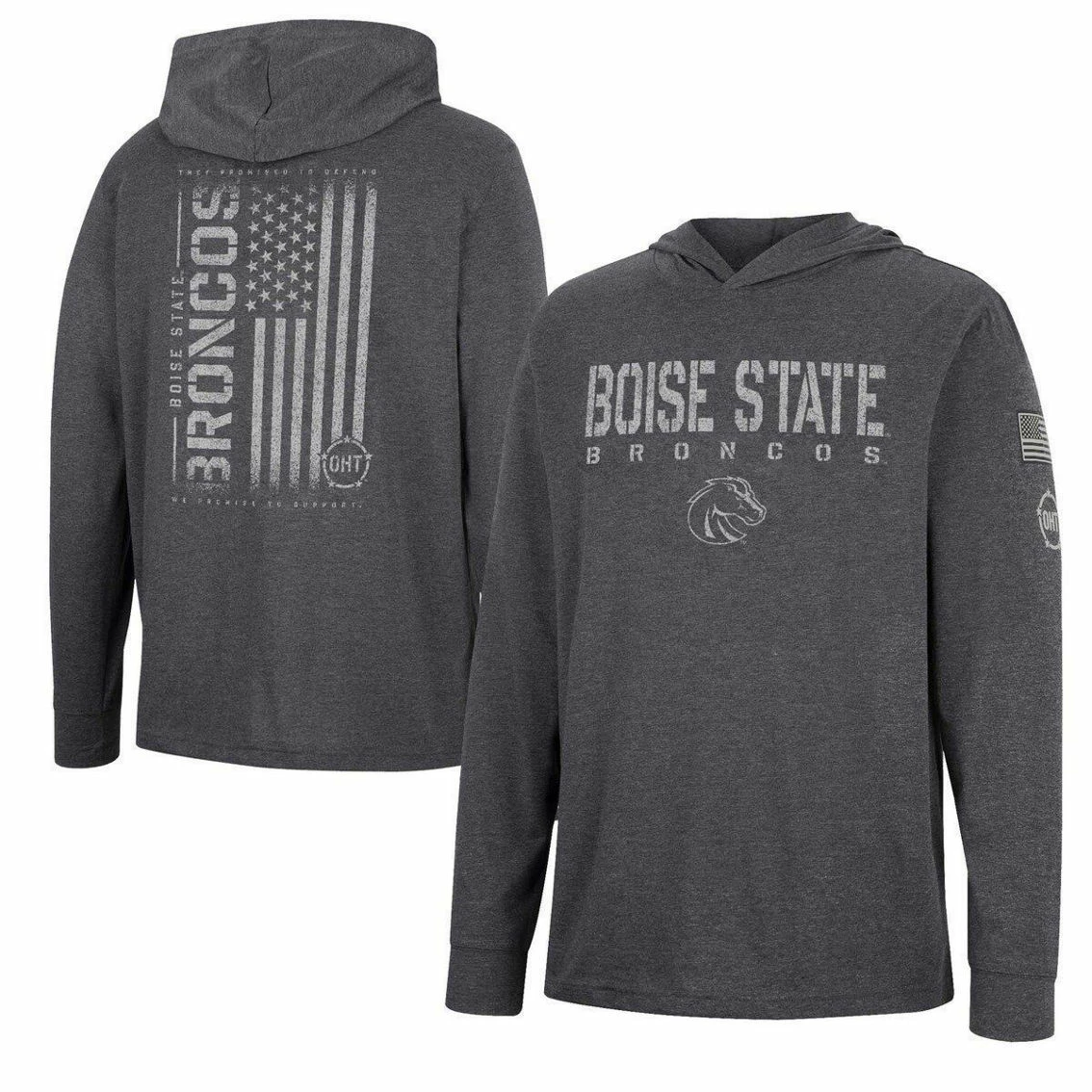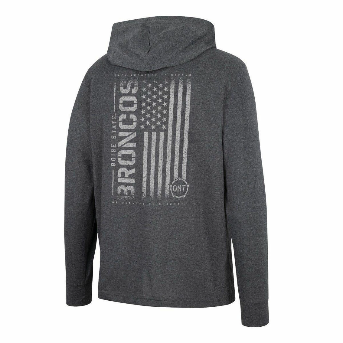 - Represent the Boise State Broncos in patriotic fashion with this Colosseum OHT hoodie T-shirt. Not only does it feature distressed team graphics across the front and back, but the embroidered American flag and Operation Hat Trick logo on the left sleeve allow you to give a big thank you to our military members. Showing your appreciation for those brave individuals and the Boise State Broncos has never been easier than it is with this long sleeve tee.