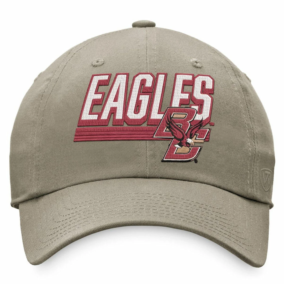 - Featuring a relaxed construction for a comfortable feel, this Boston College Eagles Slice adjustable hat from Top of the World will make for a spirited complement to your go-to game day tee. The adjustable fabric strap gives you a fully customizable fit, and the embroidered Boston College Eagles graphics will make a statement anytime you wear it. This will give you the perfect finishing touch to any casual outfit.