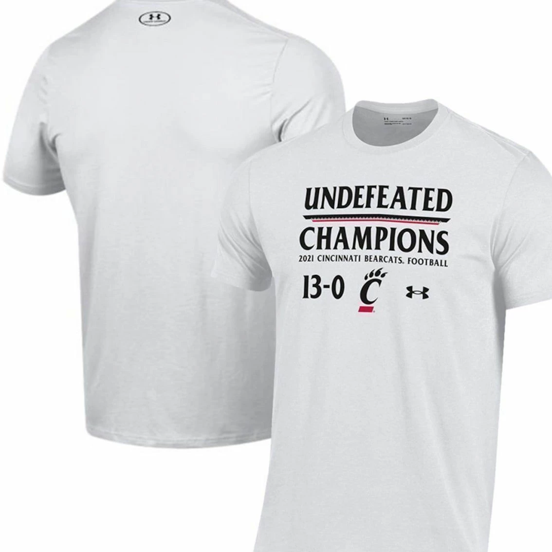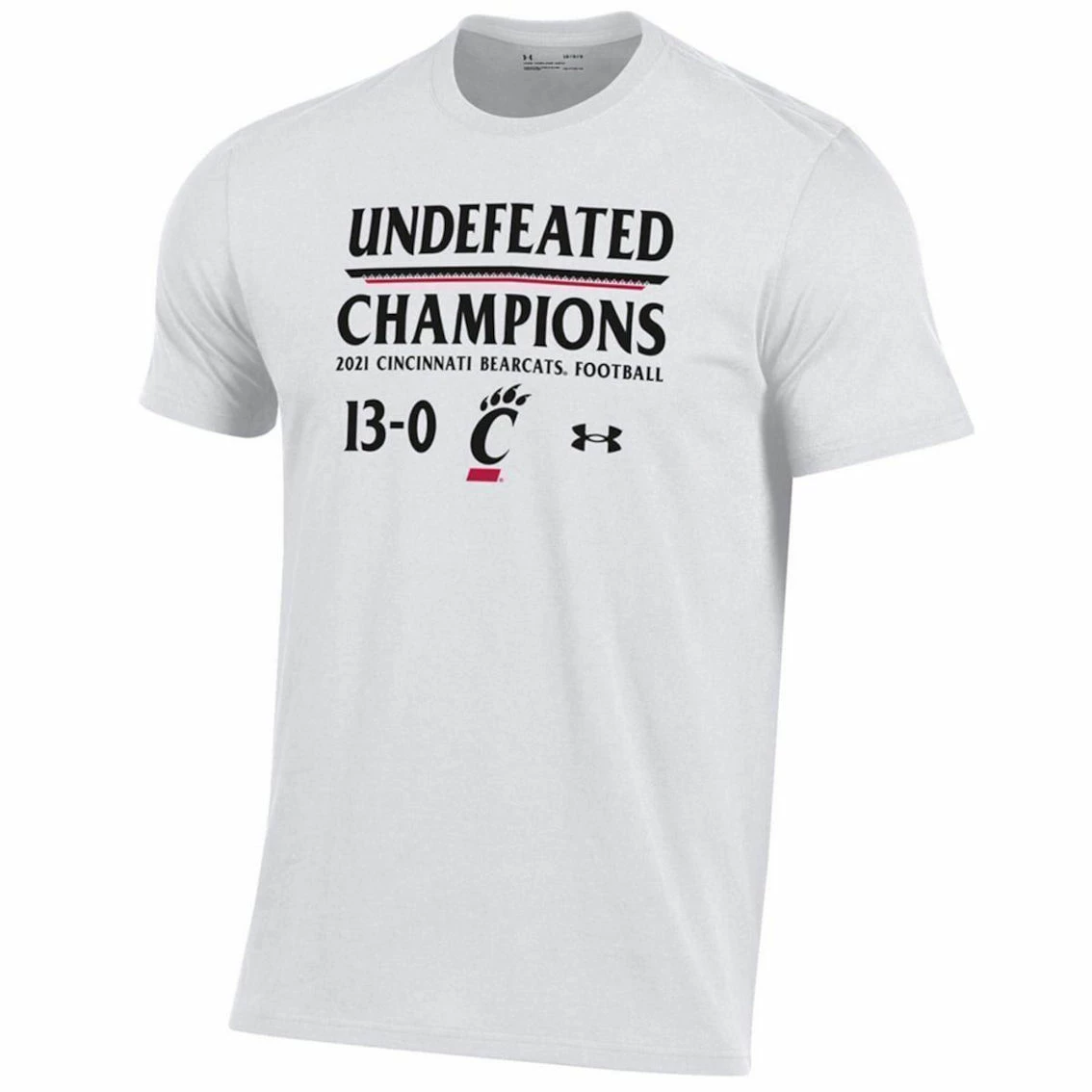 - Tell the world how proud you are to be a loyal Cincinnati Bearcats fan when you grab this 2021 AAC Football Conference Champions Undefeated T-Shirt. This Under Armour gear is the perfect addition to your wardrobe for celebrating your team’s perfect season. The bold Cincinnati Bearcats graphics will make this your go-to piece for game days and every day.
